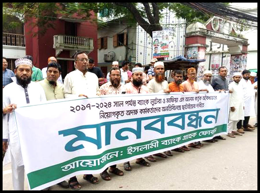 বক্তব্য রাখেন-ইসলামী ব্যাংক গ্রাহক ফোরামের নেতা মাহমুদুল হাসান কামাল, মো: মাহাদী হোসাইন, আব্দুর রহীম, মো: সালেহ উদ্দীন, মাওলানা সাহাদাত হোসেন, মীর মাহবুবুর রহমান, আব্দুল হাই, মো: ইব্রাহীম সহ আরও অনেকেই। বক্তারা বলেন, বিগত দিনে ফ্যাসিস্ট সরকারের অবৈধ দখলদার এস আলম গ্রুপ বিনা নিয়োগ পরীক্ষায় ১১ হাজার কর্মী নিয়োগ দিয়েছে। যাদের কোন যোগ্যতা নেই। তাদেরকে পূণরায় নিয়োগ দেওয়া যাবে না এবং তাদের নিয়োগ বাতিল করতে হবে। অনতিবিলম্বে এসব ফ্যাসিস্টের দোসরদের ইসলামী ব্যাংক থেকে বিতাড়িত করে প্রতিষ্ঠানকে কলুসমুক্ত করতে হবে।