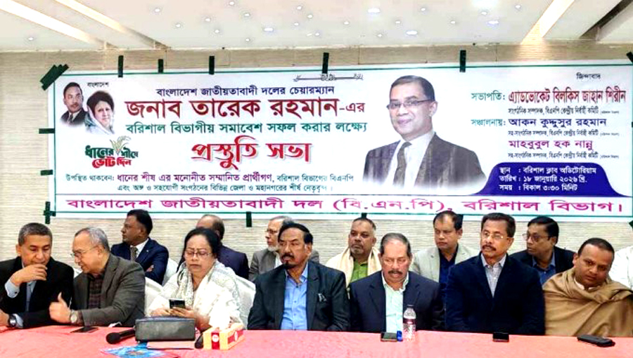 মুক্তখবর ডেস্ক রিপোর্ট : জাতীয়তাবাদী দল বিএনপি চেয়ারম্যান তারেক রহমানের বরিশাল আগমনকে ঘিরে মহাসমাবেশের জনসমাগম অতীতের সব রেকর্ড ভেঙে দেবে বলে জানিয়েছে বিএনপি নেতারা। ২৬ জানুয়ারির মহাসমাবেশ সফলভাবে সম্পন্ন করতে রোববার (জানুয়ারি ১৮) বিকেলে নগরীর বরিশাল ক্লাবে অনুষ্ঠিত প্রস্তুতি সভায় এ কথা জানান নেতারা। এসময় বরিশাল বিভাগের ৮টি সাংগঠনিক জেলার নেতাকর্মীসহ ২১ আসনে বিএনপির সংসদ সদস্য প্রার্থীরা উপস্থিত ছিলেন। সভার শুরুতে নেতাকর্মীরা খালেদা জিয়ার রুহের মাগফেরাত কামনায় দোয়া মোনাজাত করেন। এসময় বক্তব্য দেন, বরিশাল-৫ (সদর) আসনে বিএনপির প্রার্থী মজিবর রহমান সরোয়ার, বরিশাল-১ আসনের জহির উদ্দিন স্বপন, বরিশাল-৬ আসনের প্রার্থী আবুল হোসেন খান, ভোলা ৩ আসনের মেজর (অব.) হাফিজ উদ্দিন আহমদ প্রমুখ। বিএনপির সাংগঠনিক সম্পাদক বিলকিস জাহান শিরিনের সভাপতিত্বে এবং সহ সাংগঠনিক সম্পাদক আকন কুদ্দুসুর রহমান ও মাহাবুবুল হক নান্নুর সঞ্চালনায় এই সভা হয়। ভোলা-৩ (লালমোহন ও তজুমদ্দিন) আসনের বিএনপির প্রার্থী মেজর (অবসরপ্রাপ্ত) হাফিজ উদ্দিন আহমদ বীর বিক্রম বলেন, বাংলাদেশের জনগণ ভোট দেওয়া ভুলে গিয়েছিল। গত ১৬ বছরে প্রহসনের নির্বাচন হয়েছে। দেশবাসী নেতৃত্বে মাফিয়া হাসিনার পতন হয়েছে। গণতন্ত্রহীন বাংলাদেশে আবার গণতন্ত্র প্রতিষ্ঠার সুযোগ হয়েছে। আশা করি সবাই ধানের শীষে ভোট দেবেন, যার মধ্য দিয়ে দেশের উন্নয়ন হবে। তিনি আরও বলেন, বরিশাল বিএনপির ঘাঁটি। এখানে প্রতিটা জেলার জনপ্রতিনিধিরা প্রতিযোগিতামূলকভাবে জনগণ নিয়ে বের্লসপার্ক মাঠে উপস্থিত হবেন। আশা করছি অতীতের সব রেকর্ড ভেঙে একটি বিশাল জনসমুদ্র পরিণত হবে।