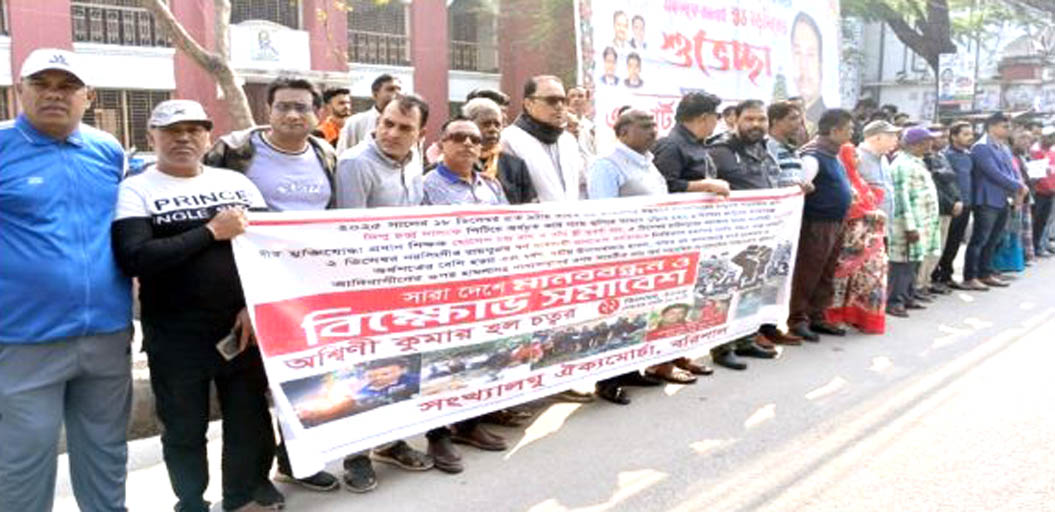 দীপু হত্যার প্রতিবাদে বরিশালে মানববন্ধন