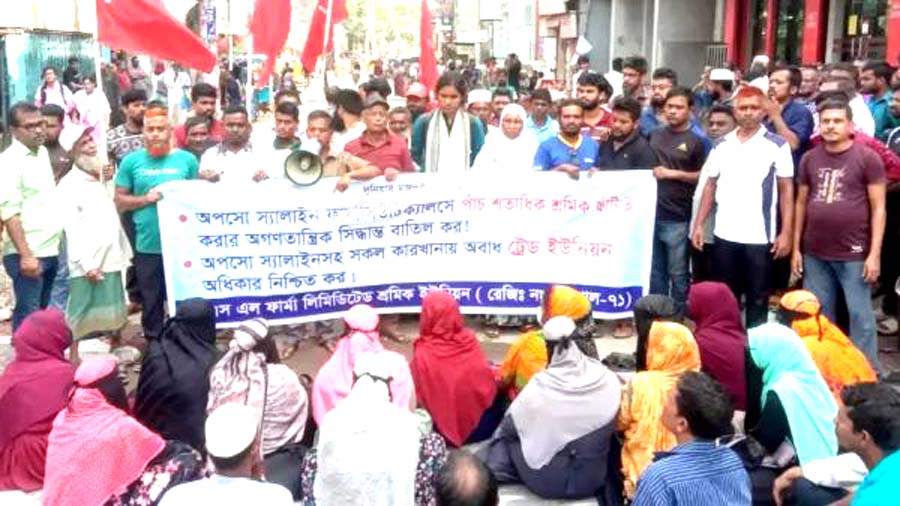 বরিশালে অপসোনিনের ৫০০ শ্রমিক চাকরিচ্যুৎ, প্রতিবাদে বিক্ষোভ
