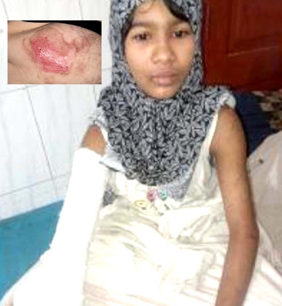মুক্তখবর ডেস্ক রিপোর্ট : বরিশালের মেহেন্দিগঞ্জে এক প্রবাসীর স্ত্রীর নির্যাতনে গরম পানিতে ঝলসে গেছে ১৪ বছর বয়সী শিশু গৃহকর্মী লামিয়ার শরীর। অভিযুক্ত নারী ফাইজা আক্তারকে শুক্রবার সন্ধ্যায় গ্রেপ্তার করেছে পুলিশ। বর্তমানে শিশুটি মেহেন্দিগঞ্জ স্বাস্থ্য কমপ্লেক্সে চিকিৎসাধীন। বৃহস্পতিবার (ফেব্রুয়ারি ২৬) রাত ১০টার সময় এ নির্যাতনের ঘটনা ঘটে। ভুক্তভোগী লামিয়া আক্তার উপজেলার সদর ইউনিয়নের চরহোগলা ২নং ওয়ার্ডের আক্তার হোসেনের মেয়ে। আহত লামিয়া গত ৬ বছর ধরে প্রবাসী জহির তালুকদারের বাসায় কাজ করছিল। শিশুটির অভিযোগ, গৃহকর্ত্রী ফাইজা তুচ্ছ ঘটনায় তাকে প্রায়ই শারীরিক নির্যাতন করতেন। বৃহস্পতিবার গভীর রাতে সামান্য অজুহাতে হত্যার উদ্দেশ্যে তার গায়ে গরম পানি ঢেলে দেওয়া হয় বলে সে জানায়। গরম পানিতে শিশুটির একটি হাতের ৯০ শতাংশ ঝলসে গেলেও পাষণ্ড ফাইজা তাকে চিকিৎসকের কাছে যেতে দেননি। শুক্রবার সকালে শিশুটি কোনোমতে পালিয়ে তার মামা সিরাজুল ইসলামের কাছে পৌঁছায়। পরে তাকে দ্রুত হাসপাতালে ভর্তি করা হয় এবং মেহেন্দিগঞ্জ থানায় একটি মামলা দায়ের করা হয়। মামলার পরিপ্রেক্ষিতে মেহেন্দিগঞ্জ থানার অফিসার ইনচার্জ (ওসি) মো: মিজানুর রহমান হাওলাদারের নির্দেশে পুলিশের একটি টিম অভিযান চালায়। এসআই মোশারেফ হোসেনের নেতৃত্বে পৌরসভার চরহোগলা এলাকা থেকে অভিযুক্ত ফাইজাকে আটক করা হয়। মেহেন্দিগঞ্জ থানার ওসি সাংবাদিকদের জানান, অভিযোগ পাওয়ার সাথে সাথেই পুলিশের একটি চৌকস টিম অভিযুক্তকে আটক করতে সক্ষম হয়েছে। পরবর্তী আইনি পদক্ষেপের জন্য তাকে আদালতে পাঠানো হবে বলে তিনি উল্লেখ করেন। এই ন্যাক্কারজনক ঘটনায় এলাকায় তীব্র ক্ষোভ সৃষ্টি হয়েছে এবং স্থানীয়রা অভিযুক্তের দৃষ্টান্তমূলক শাস্তি দাবি করেছেন।