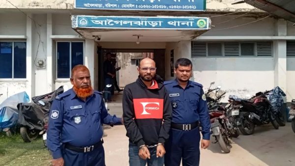 মুক্তখবর ডেস্ক রিপোর্ট : বরিশালের আগৈলঝাড়ায় মাদক সম্পৃক্ততার অভিযোগে গ্রেপ্তারের পর কারাগার থেকে জামিনে মুক্তি পেয়ে নিজ ব্যবসা প্রতিষ্ঠানের কর্মচারীকে নির্যাতনের অভিযোগে শেখর বসু নামে এক মাছ ঘেরের মালিককে গ্রেপ্তার করেছে পুলিশ। রোববার (মার্চ ১) সকালে গ্রেপ্তারকৃতকে বরিশাল আদালতে প্রেরণ করা হয়েছে। এ আগে শুক্রবার ভুক্তভোগী কর্মচারী নারায়ন হালদার থানায় লিখিত অভিযোগ দায়েরের পর শনিবার অভিযান চালিয়ে তাকে গ্রেপ্তার করা হয় বলে পুলিশের পক্ষ থেকে জানানো হয়েছে। নারায়ন হালদার তার মামলায় অভিযোগে বলেন, ঘের মালিক শেখর বসুকে মাদকের সঙ্গে সম্পৃক্ততা থাকার অভিযোগে জেলা গোয়েন্দা পুলিশ (ডিবি) গ্রেপ্তার করে। শেখর বসু জেল ছাড়া পেয়ে আমাকে সন্দেহ করে তার ঘের পাড়ের ঘরে আটক করে রশি দিয়ে বেঁধে মারধর করে মাথার চুল কেটে দেয়। মারধরে আমি অসুস্থ হয়ে পানি খেতে চাইলে ঘের মালিক শেখর আমার মুখে প্রসাব করে দেয়। পরে তার মায়ের কথায় আমাকে ছেড়ে দেয়। গুরুতর অসুস্থ অবস্থায় এখনও আগৈলঝাড়া উপজেলা স্বাস্থ্য কমপ্লেক্সে ভর্তি থেকে মামলা দায়ের করেছি। আগৈলঝাড়া থানার ওসি সুশংকর মল্লিক সাংবাদিকদের বলেন, কর্মচারীকে পাশবিক নির্যাতনের অভিযোগে দায়ের হওয়া মামলা শেখর বসুকে গ্রেপ্তার করা হয়েছে। তাকে আদালতে সোপর্দের পর কারাগারে পাঠানোর নির্দেশ দিয়েছেন আদালত। পুরো ঘটনা তদন্ত করে আইনি ব্যবস্থা নেওয়া হচ্ছে। প্রসঙ্গত, গত ৯ ফেব্রুয়ারি শেখর বসুকে মাদকের সঙ্গে সম্পৃক্ততা থাকার অভিযোগে গ্রেপ্তার করে জেলা গোয়েন্দা পুলিশের (ডিবি) একটি দল। পরে তাকে আদালতের মাধ্যমে কারাগারে পাঠানো হয়। শেখর বসু ১২ দিন হাজতবাসের পর গত ২২ ফেব্রুয়ারি জামিনে মুক্তি পান।