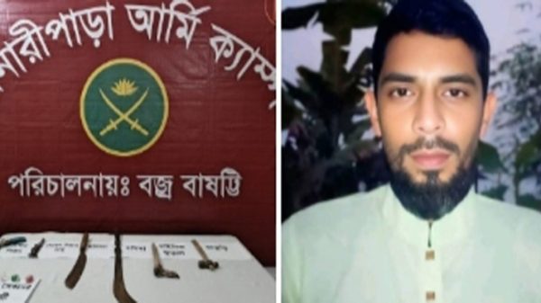 বরিশালে বিএনপি নেতার বাড়িতে সেনা অভিযান : পিস্তলসহ দেশীয় অস্ত্র উদ্ধার