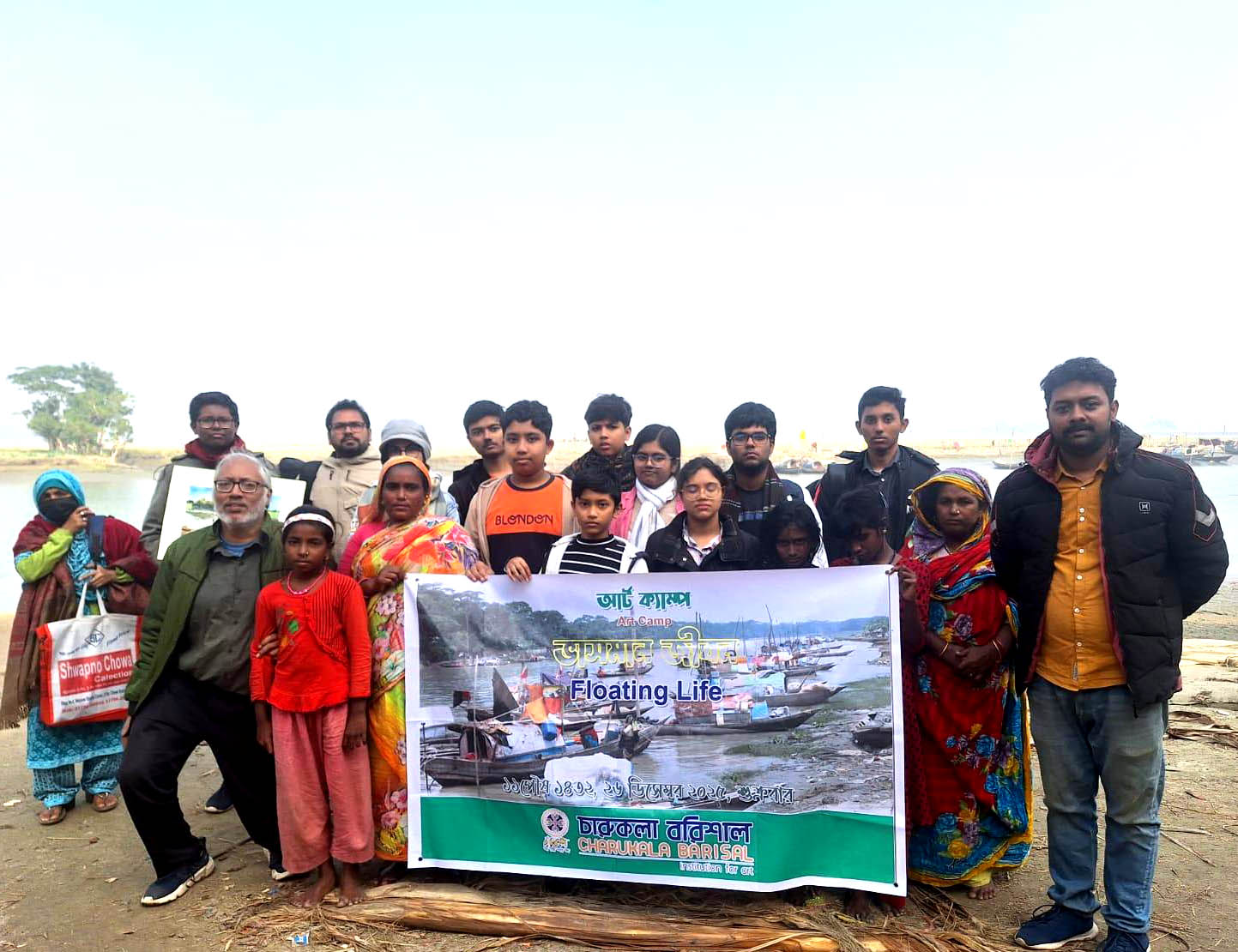বরিশালে মান্তা সম্প্রদায়ের নৌবহরে চারুকলার আর্ট ক্যাম্প
