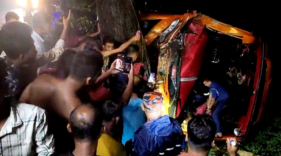 বরিশাল-ঢাকা মহাসড়কে বাস খাদে পড়ে নারী নিহত, আহত ৩০
