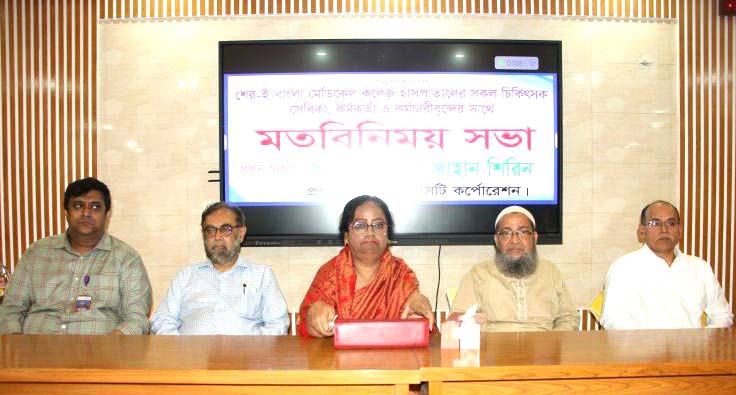 মুক্তখবর ডেস্ক রিপোর্ট : বরিশাল শেবাচিম হাসপাতালের রোগী সেবার মান উন্নয়নে সব ধরণের সহযোগিতা আশ্বাস দিলেন বরিশাল সিটি কর্পোরেশনের প্রশাসক (ভারপ্রাপ্ত মেয়র) বিলকিস আক্তার জাহান শিরিন। বৃহস্পতিবার বেলা ১২টায় শের-ই-বাংলা মেডিকেল কলেজ হাসপাতালের সার্জারি সেমিনার হলে চিকিৎসকদের সাথে মতবিনিময় সভায় তিনি এই আশ্বাস দেন। তিনি বলেন, শেবাচিম হাসপাতালে রোগী সেবার মান উন্নয়নে বরিশাল সিটি কর্পোরেশনের পক্ষ থেকে হাসপাতাল পরিচালককে সব ধরণের সহযোগিতা করা হবে। রোগী সেবার জন্য হাসপাতালের চিকিৎসক, নার্স ও অন্যান্য স্টাফদের আন্তরিক হতে হবে। তিনি আরো বলেন, হাসপাতালের স্থায়ীভাবে বর্জ্য ব্যবস্থাপনার উপর বিসিসি অচিরেই কাজ শুরু করবে। এছাড়া উন্নত মানের পাবলিক টয়লেট নির্মাণের বিষয়টি বিবেচনায় রাখা হয়েছে। এর আগে অনুষ্ঠিত মতবিনিময় সভায় উপস্থিত চিকিৎসক, নার্স ও স্টাফরা বিসিসি’র প্রশাসকের নিকট তাদের বিভিন্ন দাবি তুলে ধরেন। হাসপাতালের পরিচালক ব্রিগেডিয়ার জেনারেল ডা: এ কে এম মশিউল মুনীর সভাপতিত্বে মতবিনিময় সভায় বিশেষ অতিথির বক্তব্য রাখেন-মেডিকেল কলেজের অধ্যক্ষ প্রফেসর ডা: আনোয়ার হোসেন বাবলু, ডক্টরস অ্যাসোসিয়েশন অব বাংলাদেশ (ড্যাব) এর শেবাচিম শাখার সভাপতি ডা: মো: নজরুল ইসলাম সেলিম, বরিশাল জেলা সভাপতি ডা: মো: কবিরুজ্জামান। ড্যাব শের-ই-বাংলা মেডিকেল কলেজ শাখার সাধারণ সম্পাদক ডা: সৈয়দ ইমতিয়াজ উদ্দিন সাজিদ সঞ্চালনয় বক্তব্য রাখেন-বরিশাল জেলা সাধারণ সম্পাদক ডা: আবদুল মোনায়েম সাদ, ডা: শরিফুল ইসলাম রুমন, এনডিএফ-এর সহ-সভাপতি ডা: মহাসিন হাওলাদার, ডা: মাজহারুল রেজওয়ান রেজা ও ডা: ইস্তিয়াক আহমেদ রিফাত প্রমুখ।