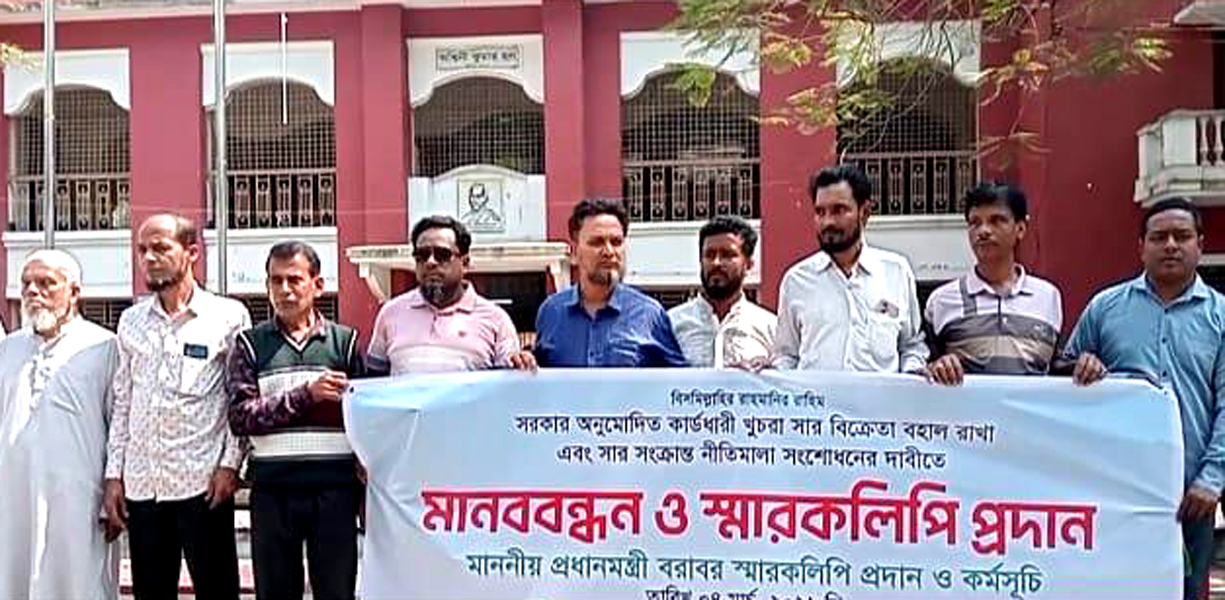 সার বিক্রেতাদের সনদ বহাল রাখার দাবিতে বরিশালে মানববন্ধন