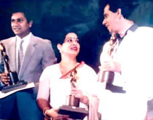 ১৯৯৬ সালে তৎকালীন প্রধানমন্ত্রী শেখ হাসিনার কাছ থেকে জাতীয় চলচ্চিত্র পুরস্কার নিচ্ছেন দিলীপ বিশ্বাস